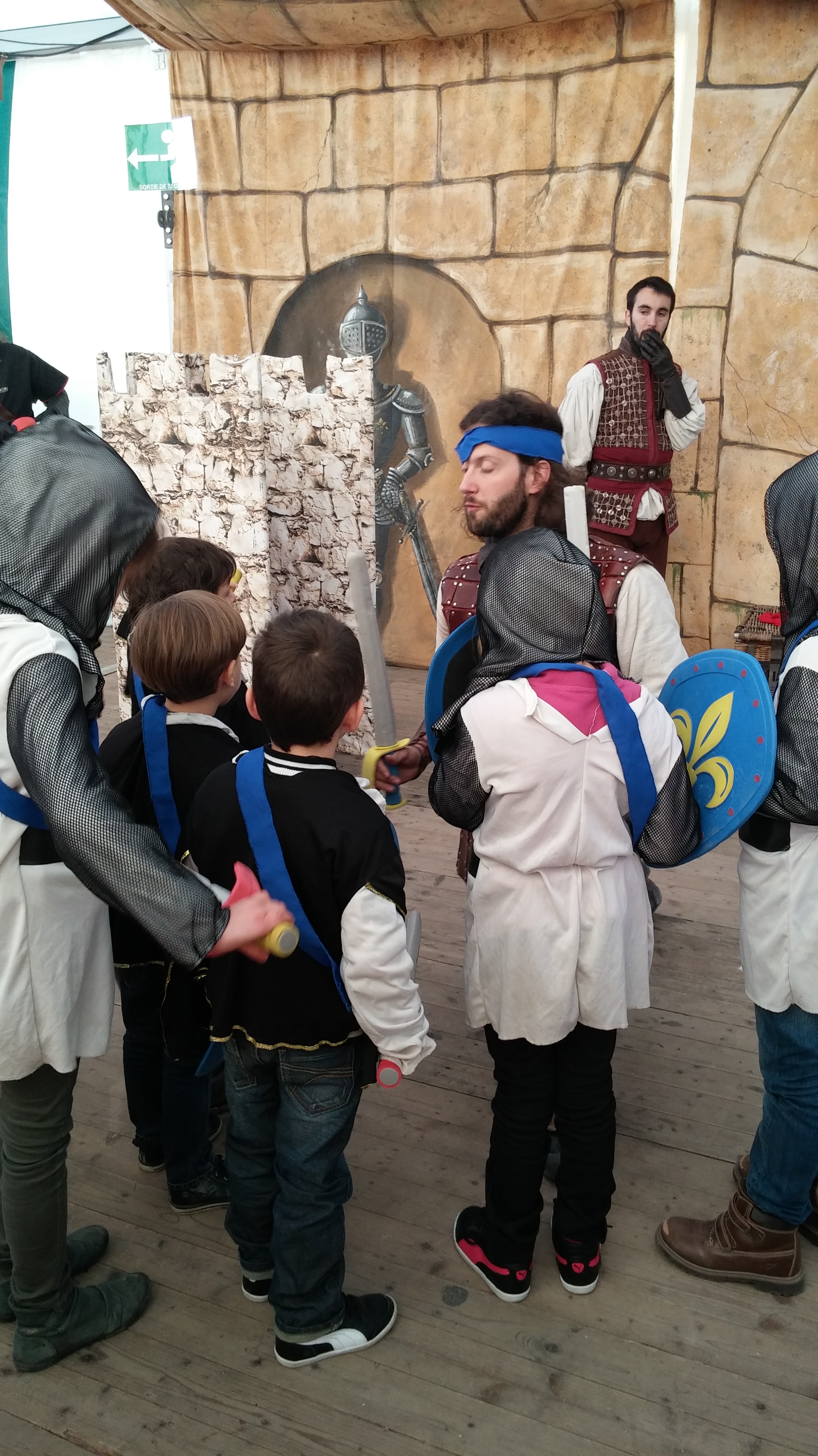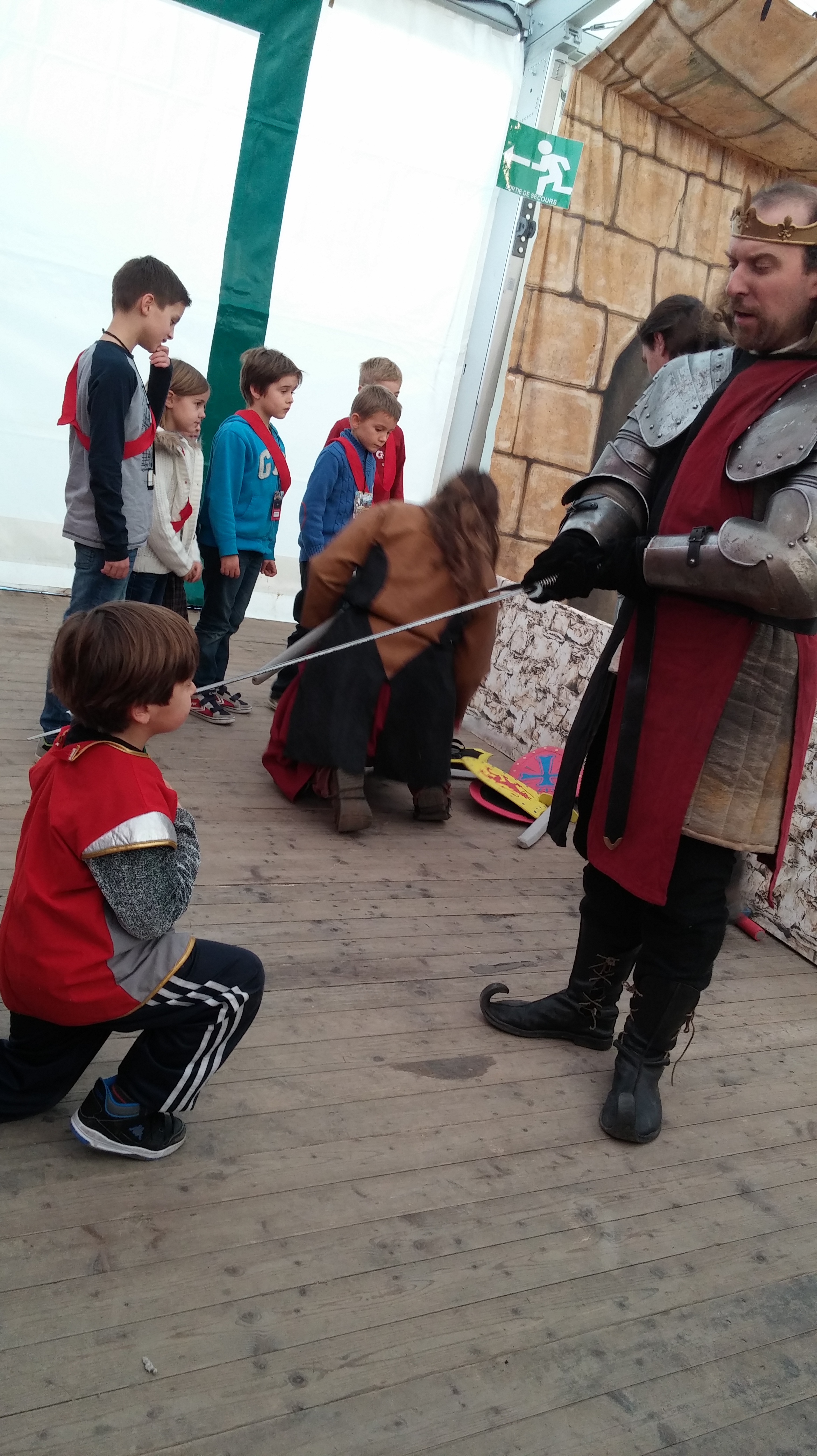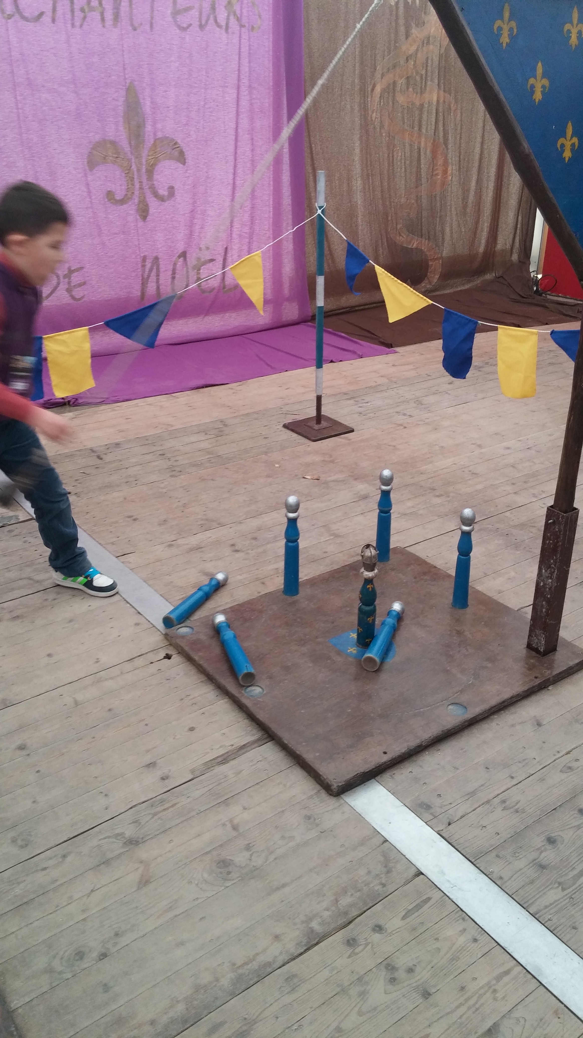Après un premier coup d’œil, nous avons incité PetitB a faire le parcours du chevalier (tir à l’arc, « joute » et attaque d château) et nous avons bien fait. L’ensemble était très bien encadré, et même si les enfants attendent un peu, ils s’amusent. Le parcours du chevalier se termine par un adoubement et une remise de diplôme.