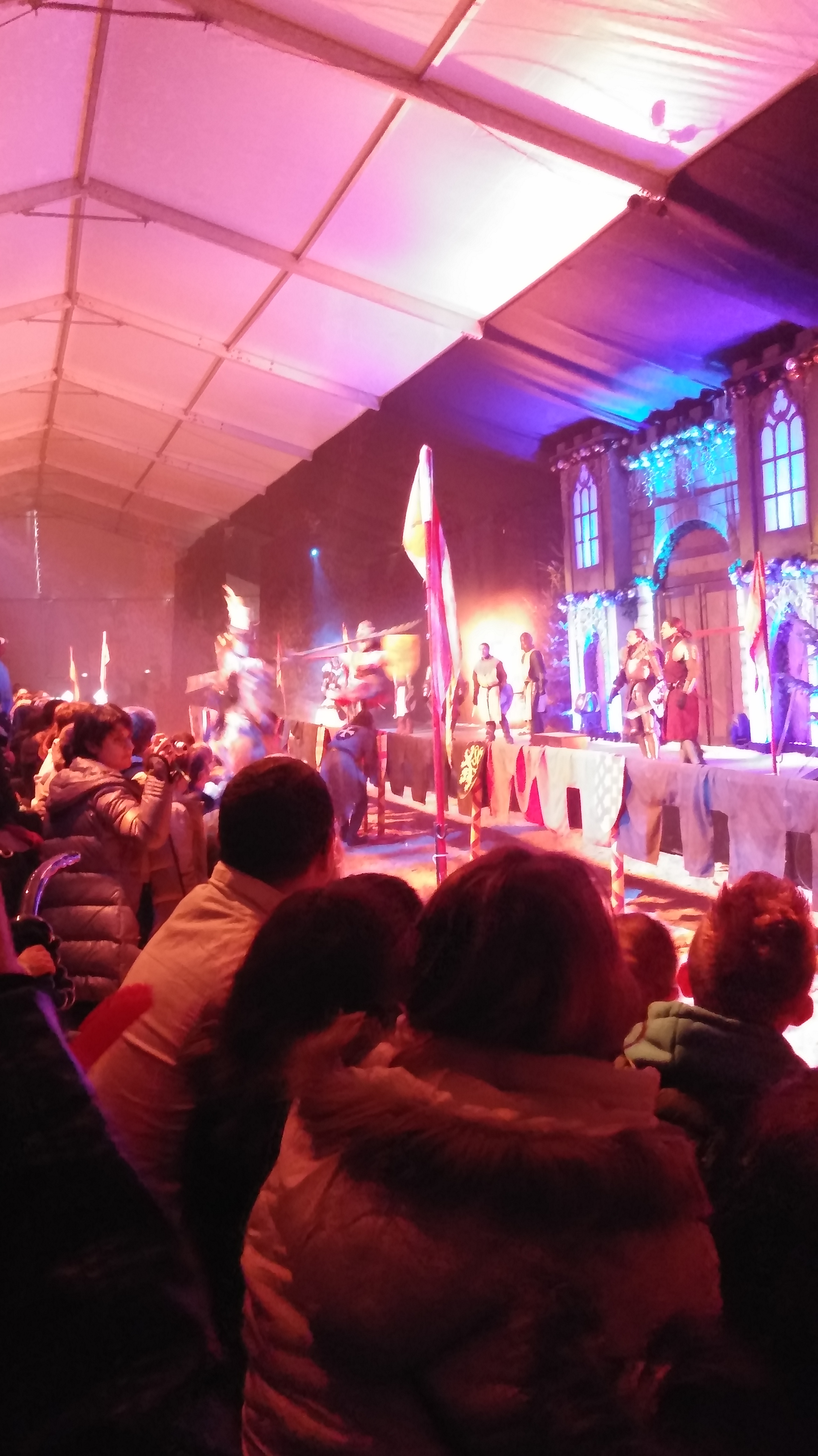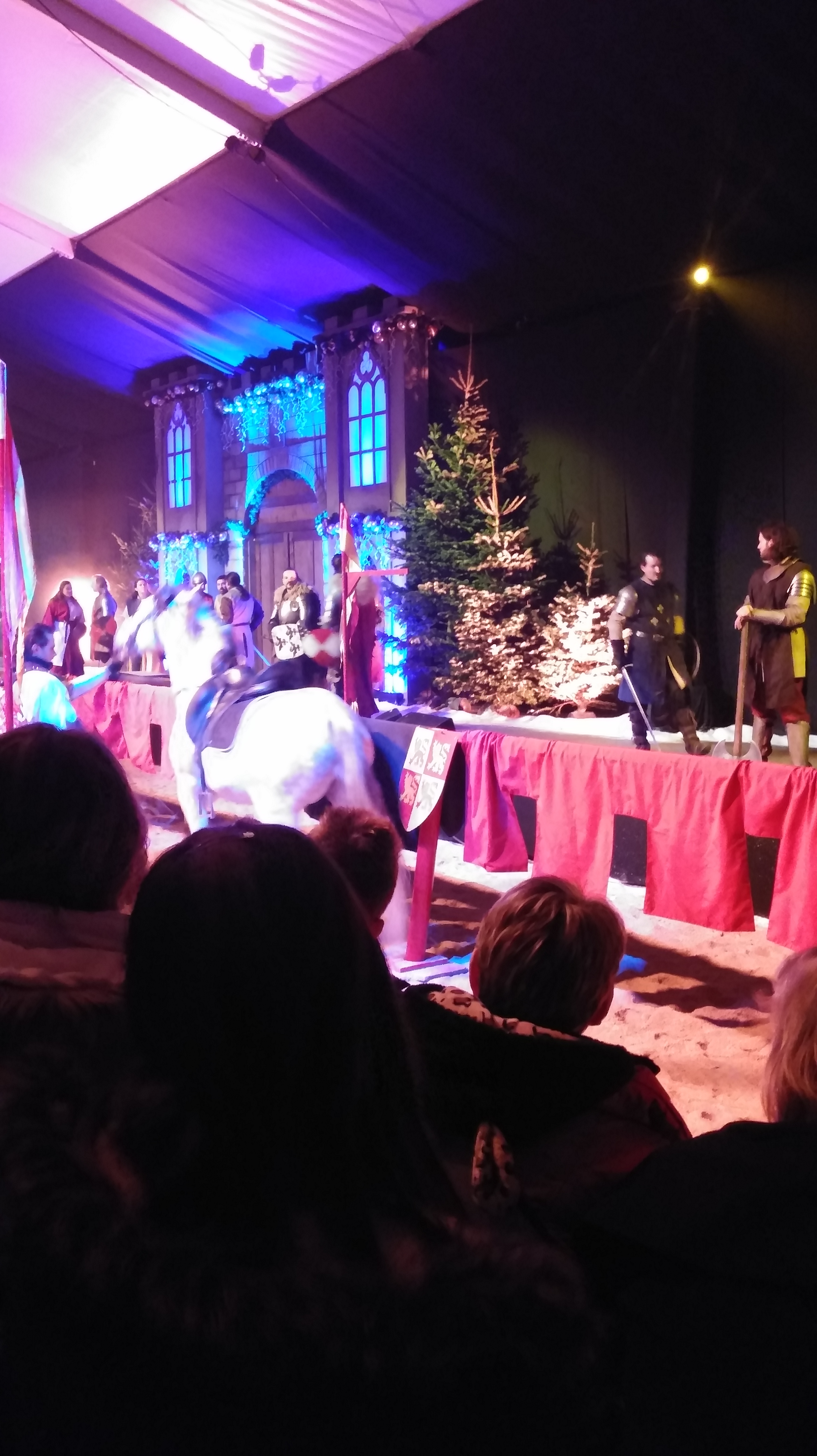 Le spectacle propose une histoire autour de Merlin, avec de la magie (une lévitation, des apparitions de colombes…), aussi des combats de chevaliers (avec des chevaux dans la tente) et le choix du « roi » des enfants. Le spectacle met un peu de temps à démarrer (Merlin n’est pas là tout de suite) et manque un peu de dynamisme. PetitB a bien aimé, et ne s’est ennuyé. Nous avons été plus mitigés (mais le spectacle c’est surtout pour les enfants)