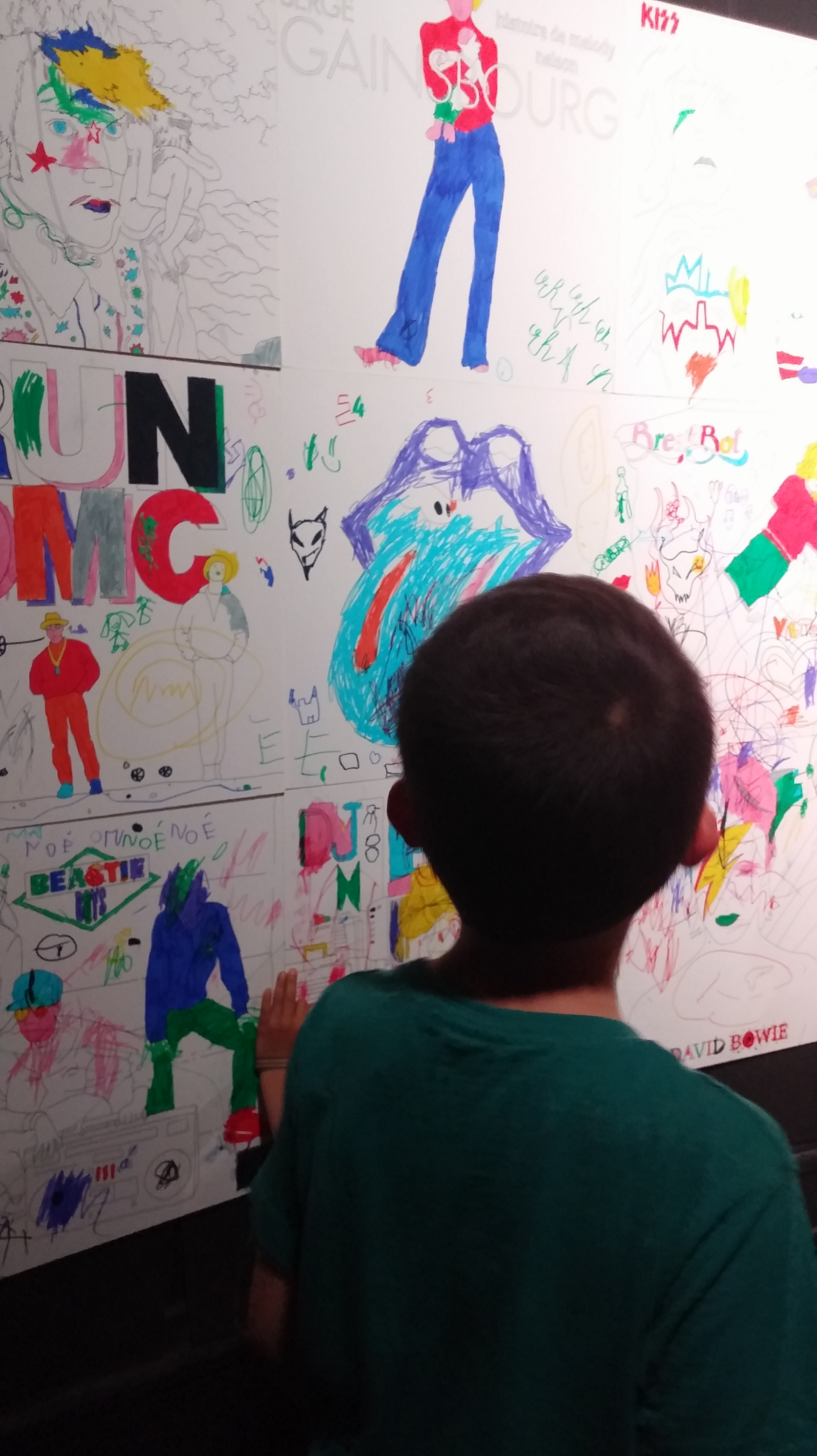 Au fond de la salle de concert, les enfants pouvaient colorier des pochettes de disque, c’était bien vu, avec aussi à disposition, des poufs pour se reposer.