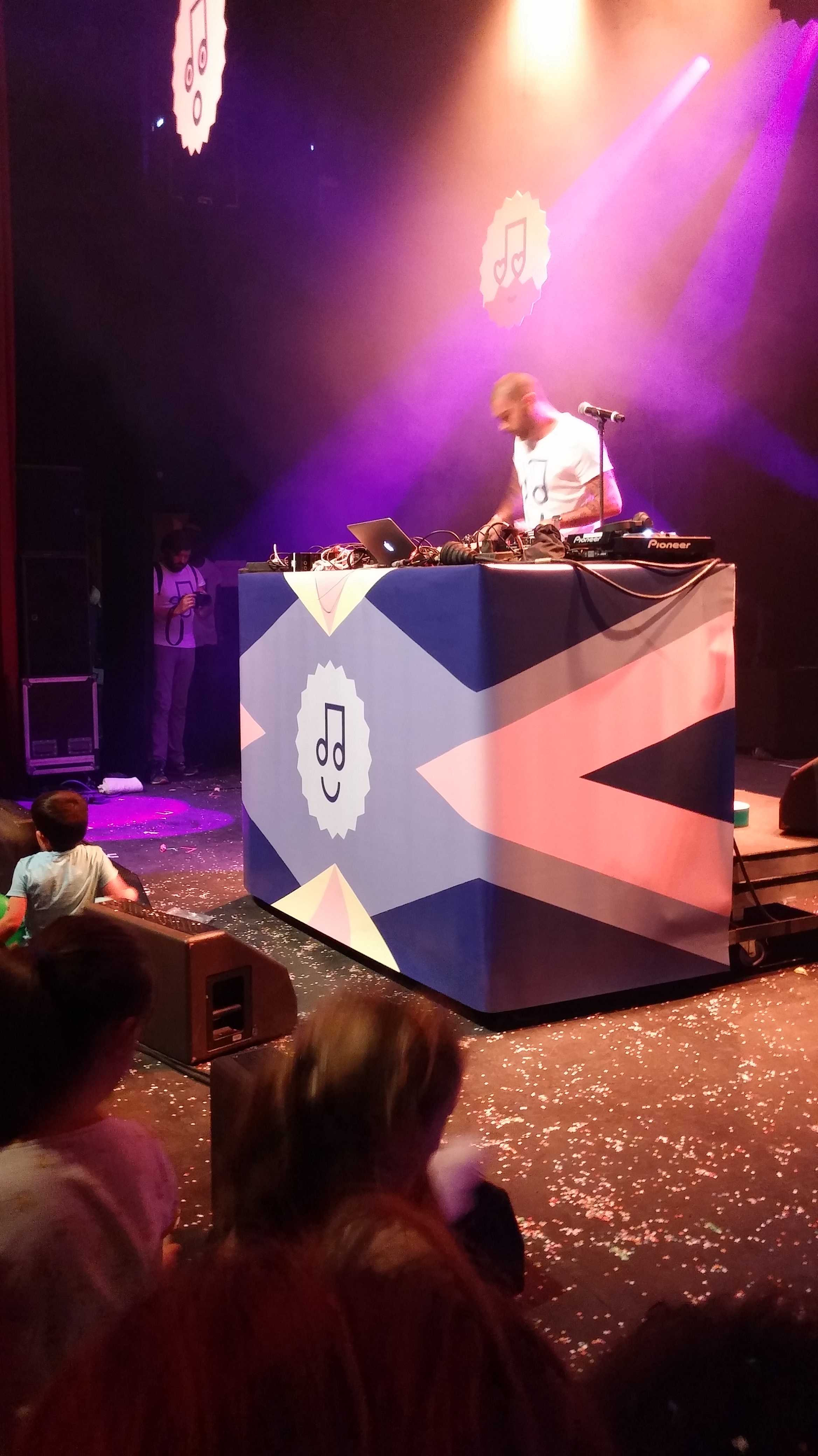 Nous ne sommes pas restés jusqu’à la fin, mais une mention spéciale à DJ Pone qui a fait un set participatif, et sur lequel les enfants, accompagnés de deux danseurs ont pu monter et danser sur scène. Beau moment !